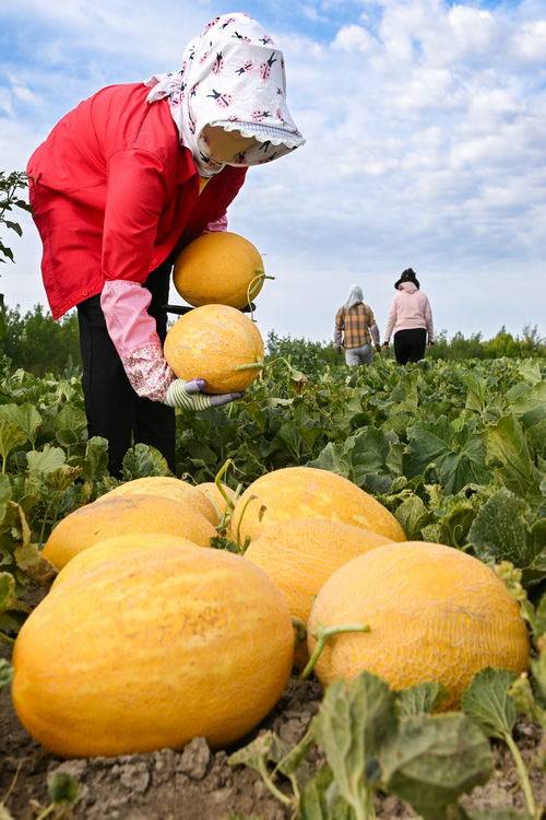 8月6日,市農業科技創新試驗基地瓜果大田,昭君9號甜瓜迎來采收季。