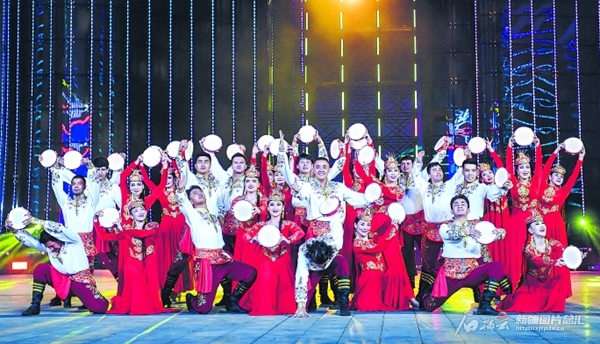 8月20日,來自吐魯番市的演員在表演《阿拉木汗》。周鵬攝