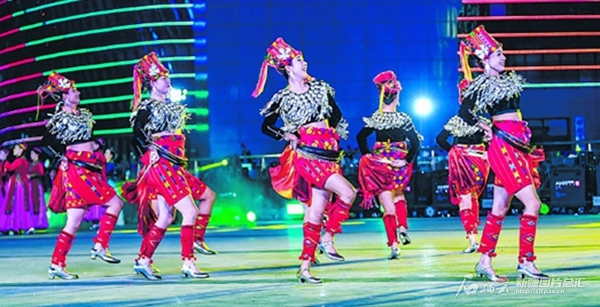 8月20日,來自云南省的演員在表演《目瑙縱歌》。 周鵬攝
