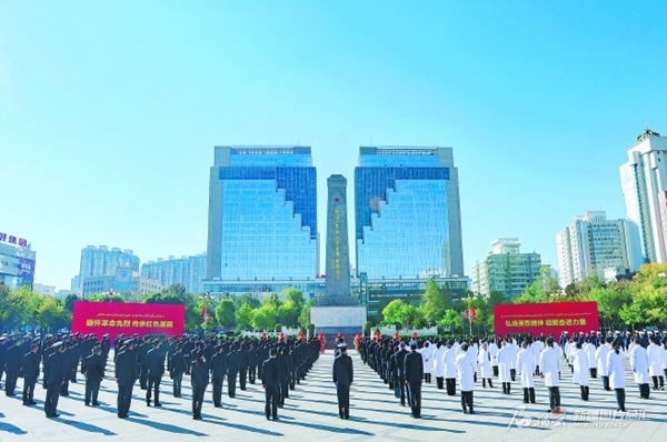 9月30日,烈士紀念日向人民英雄敬獻花籃儀式在烏魯木齊人民廣場舉行。 石榴云/新疆日報記者謝龍攝