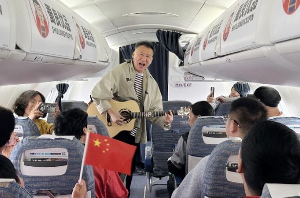 伴隨著歌聲,原本寧謐的機艙漸漸變得熱鬧起來,越來越多的旅客加入了合唱的行列,現場響起了陣陣掌聲。