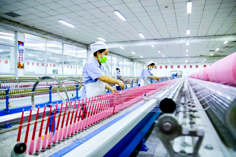 63歲的羅新民是天山紡織的退休老員工。他說,企業剛成立時他就在梳紡車間負責機修工作,當時引進的國外設備很先進,但與現在這些自動絡筒機相比簡直落后太多。當時50錠的生產線需要5個人進行手工操作,手工接頭。而現在通過引進新技術,只需一個人就可以了。當時5個人一個班是200公斤產量,現在1個人,一個班8小時的產量都能超過200公斤。