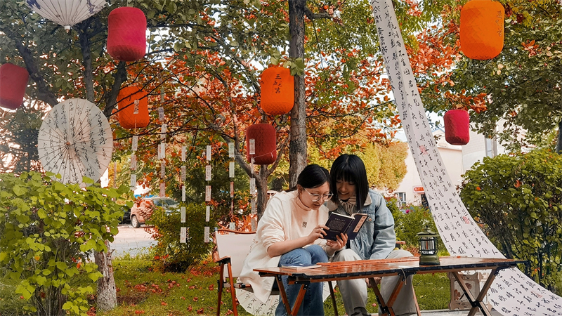 9月13日,獨山子區石榴籽公園,兩位市民正在讀書。程興春攝