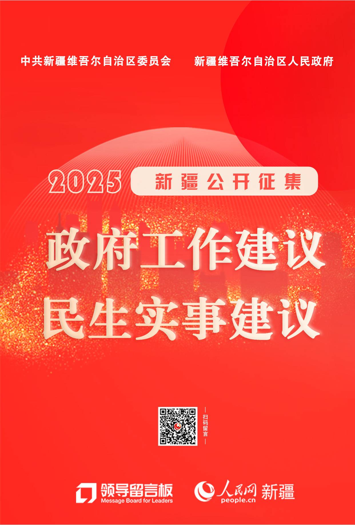 民有所呼,政有所應。自2024年11月6日至20日,自治區人民政府依托人民網“領導留言板”等平臺、網站、欄目和12345政務熱線,公開廣泛征集人民群眾對2025年自治區政府工作的建議,以及2025年民生實事建議。