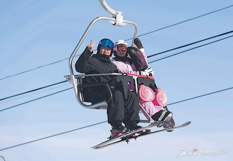 12月7日,滑雪愛好者在烏魯木齊白云國際滑雪場乘坐纜車前往雪道起點。石榴云/新疆日報記者李雄心攝