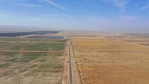 用無人機視角俯瞰玉西片區,綠油油的田地有了“成群結隊”之勢,相信不久的未來,這里將會成為一片綠洲?!拔覀冺椖繄笈?.11萬畝田間建設項目已經完工了,更高興的是,我們還引來了三家種植企業?!卑箘P爾驕傲地說。