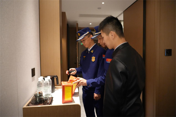 隨后,檢查人員又來到了消防控制室,隨機抽查了值班人員對消防控制柜操作熟練程度,翻閱了酒店應急疏散預案、消防安全教育培訓等消防檔案資料,并強調要定期組織全員開展應急演練,不斷提升員工消防安全意識和逃生自救能力。檢查結束后,檢查人員還現場為酒店員工普及消防安全知識,提高大家的消防安全意識以及火災應對能力。