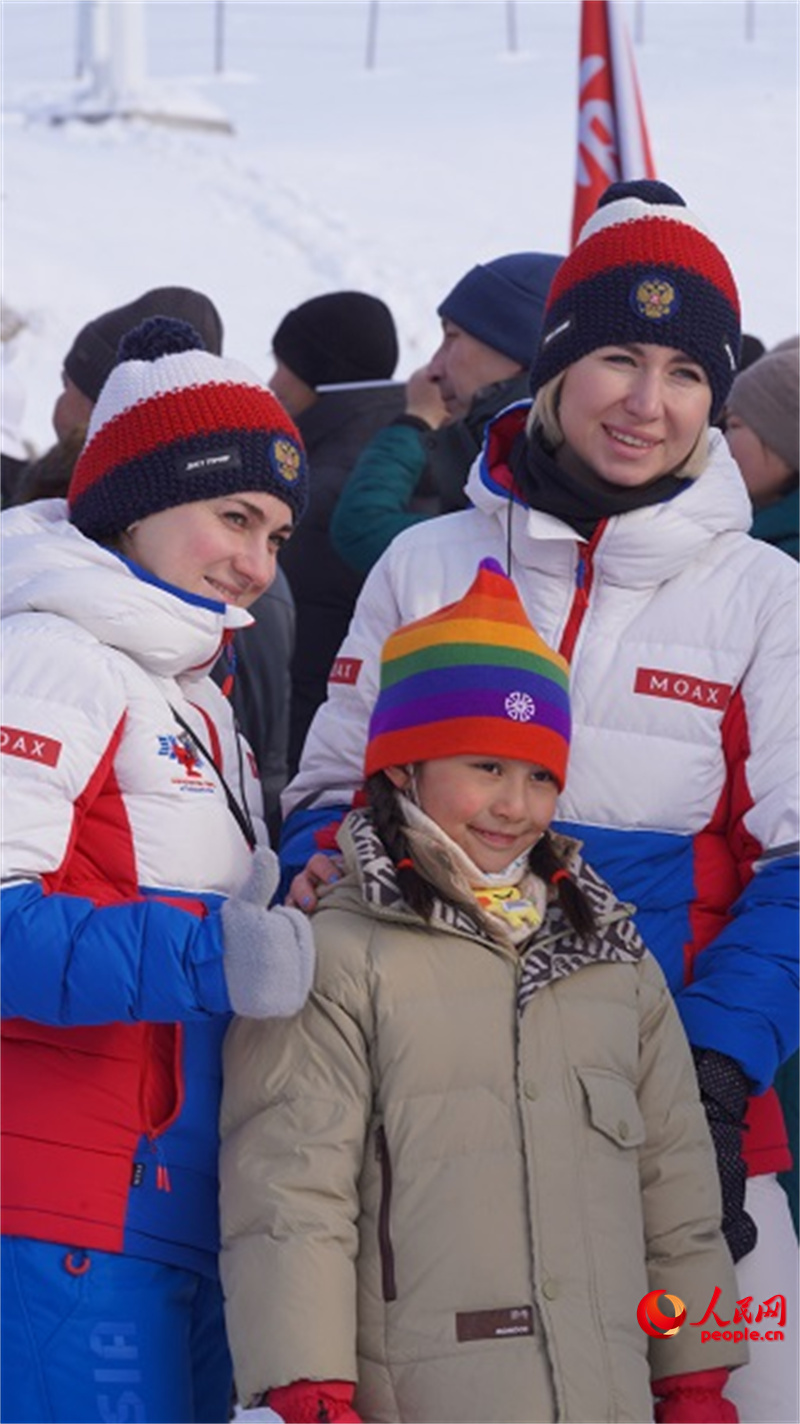 1月12日,第二屆“冰雪絲路 中國雪都”環阿爾泰山冬季運動會在阿勒泰將軍山國際滑雪度假區開幕。圖為運動員在與現場觀眾友好互動。人民網 王欲然攝