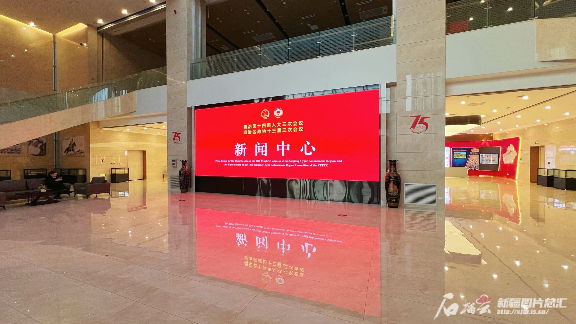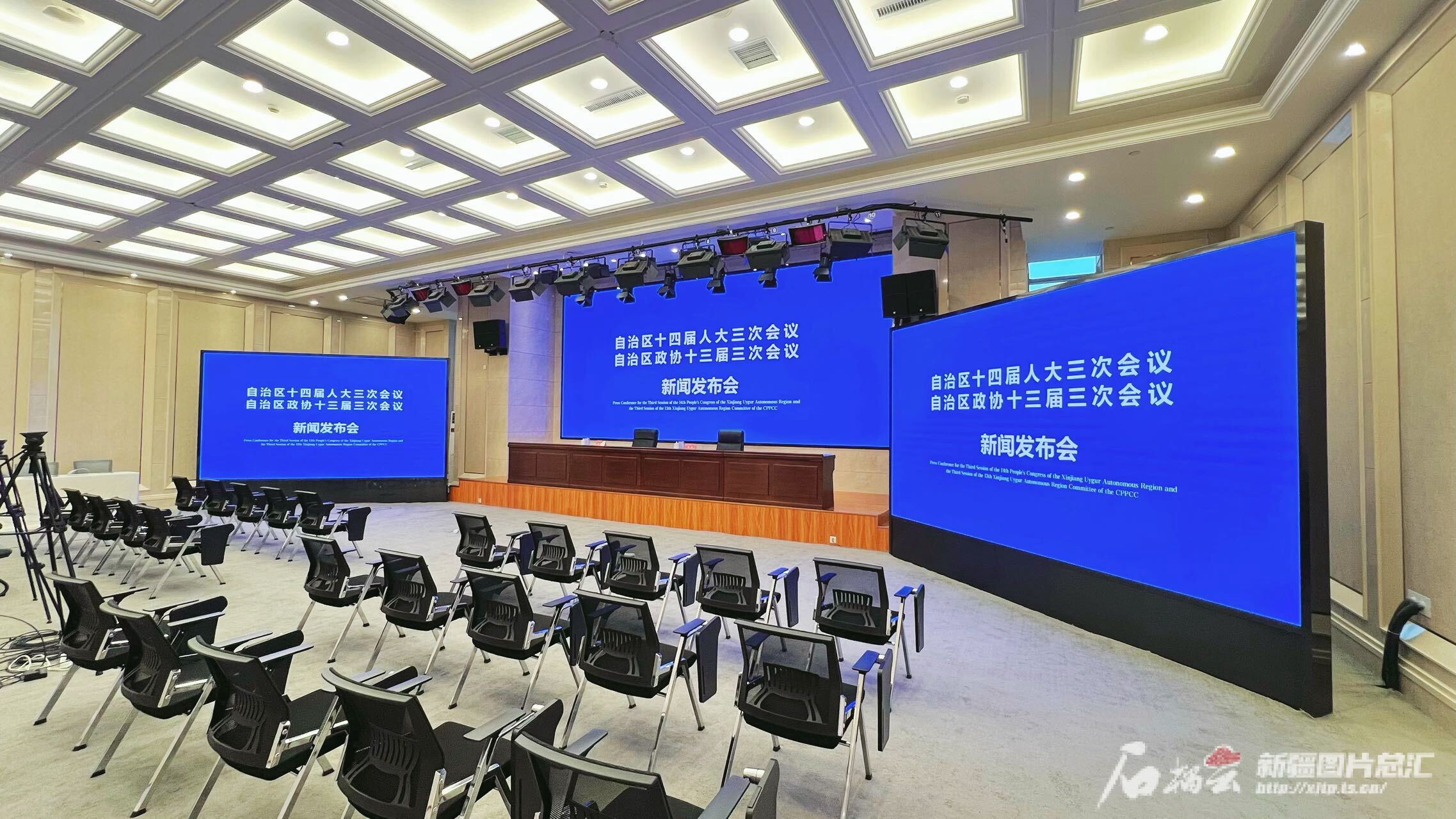 圖為2025新疆兩會新聞中心發布廳。宋君攝