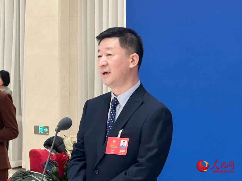 新疆政協委員高建軍在委員通道回答記者提問。人民網記者 楊睿攝