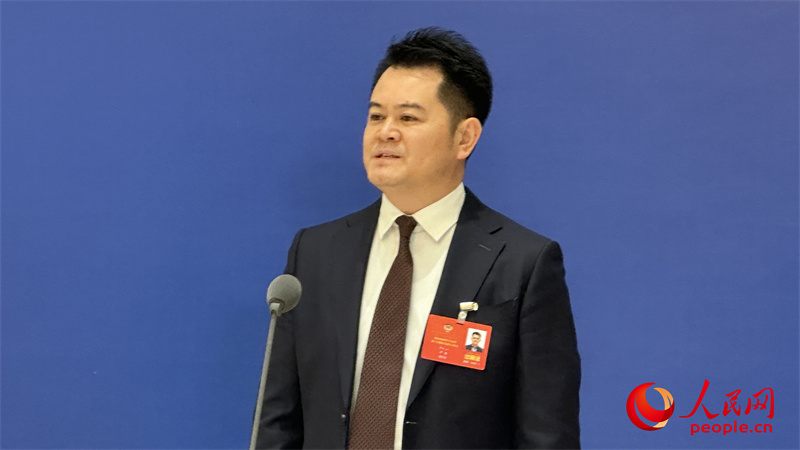 新疆政協委員、伊犁冠通生物集團有限公司董事長尹勝在委員通道回答記者提問。人民網記者 楊睿攝