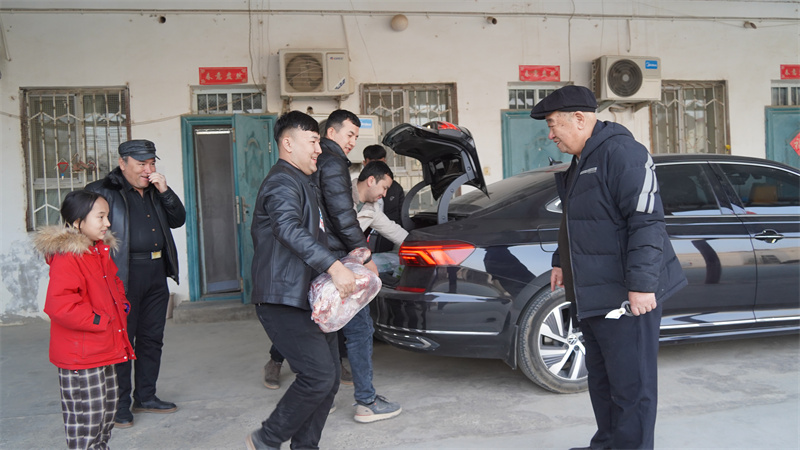 “李叔,快過年了,我們來給您送點年貨?!丙滬溙崦簟溙釄D爾蓀帶著家人給李鵬送來滿滿一后備箱禮物,牛腿、土雞、蔬菜、水果,“今年我們還來和您一起過年?!?/p>