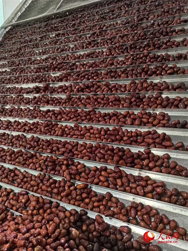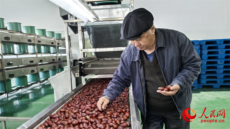 李鵬查看清洗加工后的紅棗。人民網記者 陳新輝攝