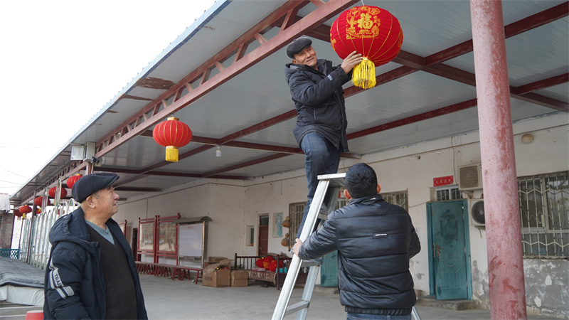 村民們在加工廠掛起了紅燈籠,迎接春節。麥麥塔烏拉.麥提薩比爾攝