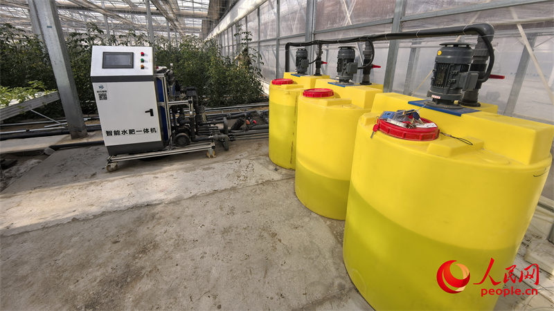 和田地區和田縣萬畝設施農業基地溫室大棚內的水肥一體設備。人民網記者 陳新輝攝