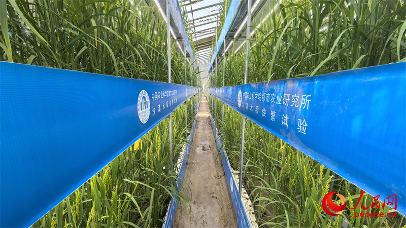 和田地區和田縣萬畝設施農業基地溫室大棚內的沙漠水稻快繁試驗。人民網記者 陳新輝攝