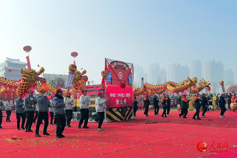 “行進的中歐班列”亮相烏魯木齊社火展演。人民網記者 韓婷攝