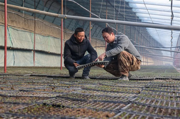 “十連現有77座溫室大棚,其中育苗大棚有36座,主要培育辣椒、番茄苗,目前訂單育苗6300盤左右?!笔B連長宗博源說,“我們按照‘黨支部+種植戶’的模式,以提前簽訂訂單的方式銷售,確保種植戶收益?!?/p>