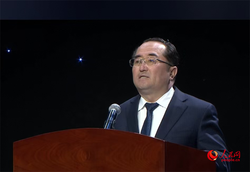 阿克蘇地委副書記、行署專員阿迪力·艾力推介礦產資源。人民網記者 韓婷攝