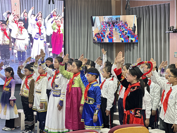 云隊課上,烏什縣不同民族的少先隊員向衢州市的小伙伴介紹了當地的風俗習慣、傳統節日和特色美食。他們用生動的語言和精彩的演示,讓衢州市的小伙伴仿佛置身于新疆廣袤大地。浙江省衢州市實驗學校教育集團也是多民族大家庭,其畬族少先隊員展示了具有地方特色的民俗文化和傳統技藝,讓烏什縣的小伙伴領略到衢州的獨特文化韻味。