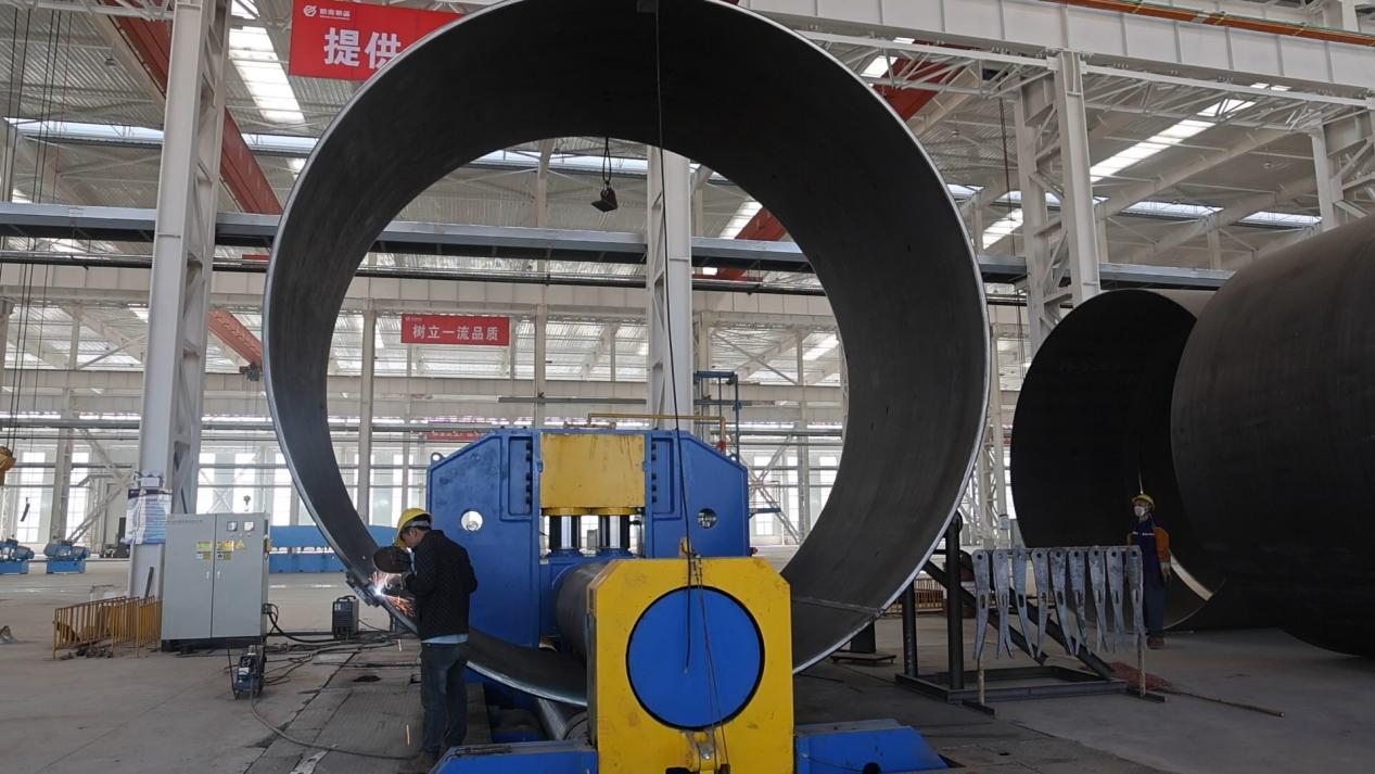 4月26日,走進新疆紫兆裝備有限責任公司重鋼廠房,風電塔筒生產線上下料、卷制、焊接等工作正在開展,作為南疆地區首家風電塔筒制造企業,公司目前正在生產的為若羌縣、溫泉縣第一批價值5400萬元的75套風電塔筒訂單。