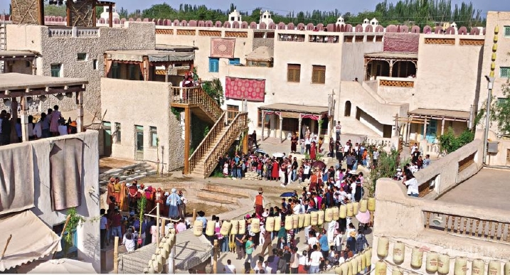 游客在和田縣約特干故城景區游玩(5月11日攝)。5月以來,該景區日均接待游客4萬人次左右,迎來一個旅游小高峰。 陽帆攝
