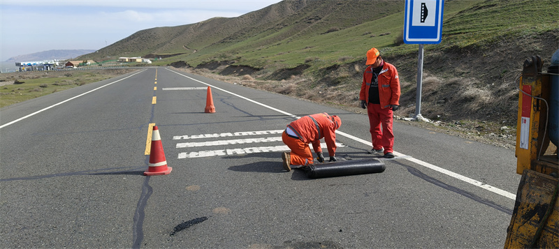 公路養護人員在獨庫公路開通前對公路附屬設施進行更換作業。新疆維吾爾自治區交通運輸廳供圖