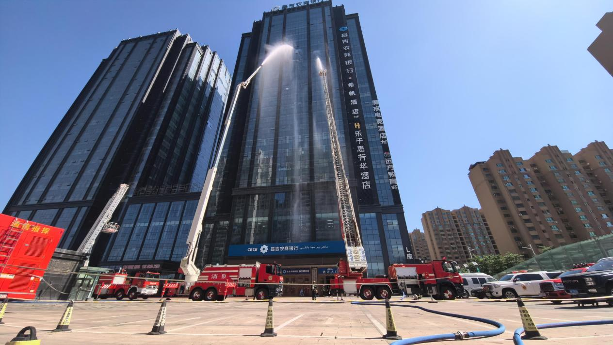 進一步做好高層建筑滅火救援準備工作,檢驗和提升高層建筑滅火救援專業隊伍協同攻堅能力,近日,和田地區、昌吉州等地消防救援支隊組織開展高層建筑滅火救援實戰演練。演練設置了偵查警戒、內攻滅火、傷員轉運、遠程供水、物資保障、小口徑水帶高層運用等多個科目。演練過程中,全體消防救援人員行動迅速、流程規范、展開有序,高效破解高層建筑火災處置“登高難、疏散難、供水難、撲救難”等難點,順利完成了演練。