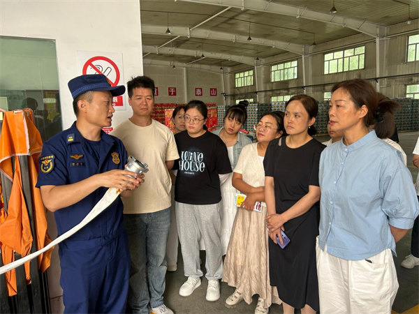 圖為石河子市消防救援支隊消防宣傳員向企業員工講解消防設施使用。徐嘉琦供圖