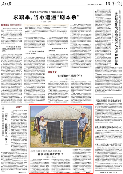捐贈設備的資金,由揚州援疆資金和后方捐款解決?!熬栀浽O備后,牧民們在高山牧場也能使用冰箱、洗衣機等大功率電器了?!碧瞥恼f,“反饋很好,我們打算繼續推廣。已經有很多牧民報名,希望下一次參與進來?!?/p>