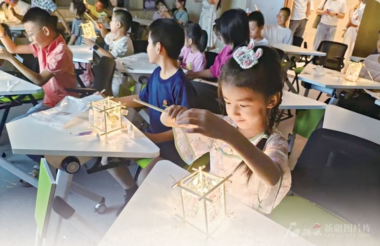 在烏魯木齊市博物館四樓,游客參觀完“未央大樂——黃河流域樂舞戲曲文物精品展”后,不僅能在面塑、糖畫、沙畫非遺傳承人指導下體驗“文物”制作,還可將成品帶回家。