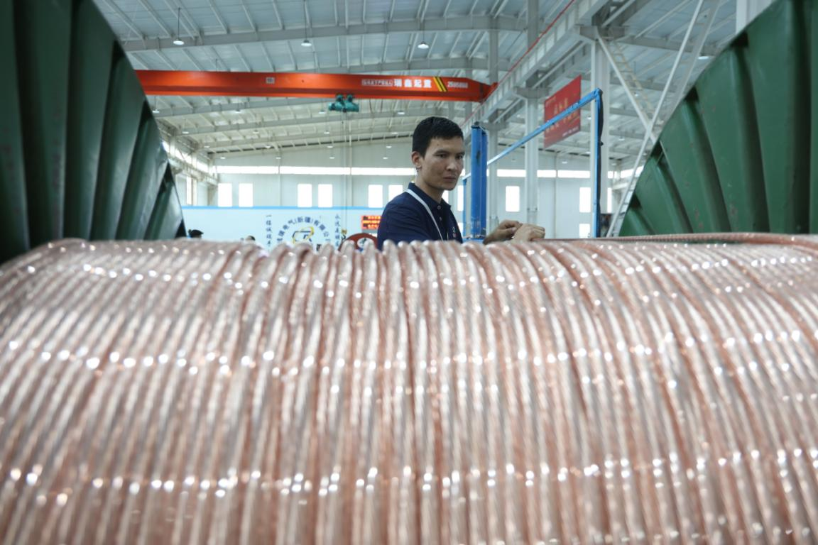 拉絲、絞線、成纜、絕緣……生產車間內各項工作正有序開展,目前正在生產的為恒源綠氧(庫車)新能源科技有限公司600萬元訂單,每天銅消耗量為8噸,隨著訂單量的不斷增加,企業生產規模將進一步擴大。