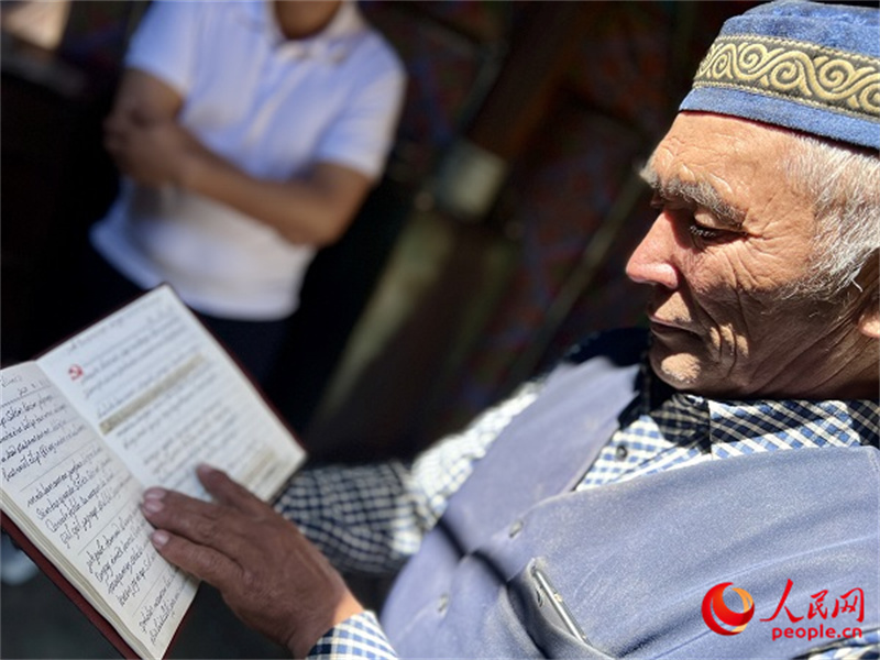 巴合加那提向記者展示自己的黨員學習筆記。人民網 王欲然攝