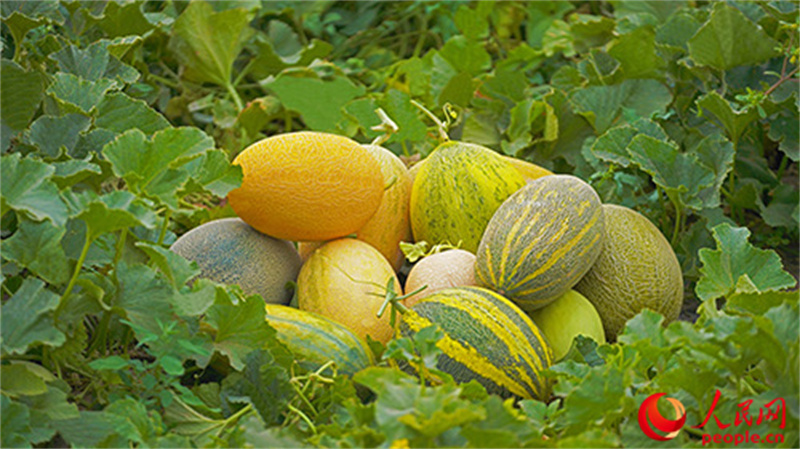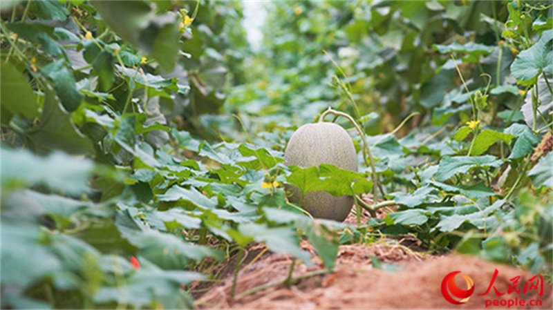 六畝園里的哈密瓜藤。人民網 李欣洋攝