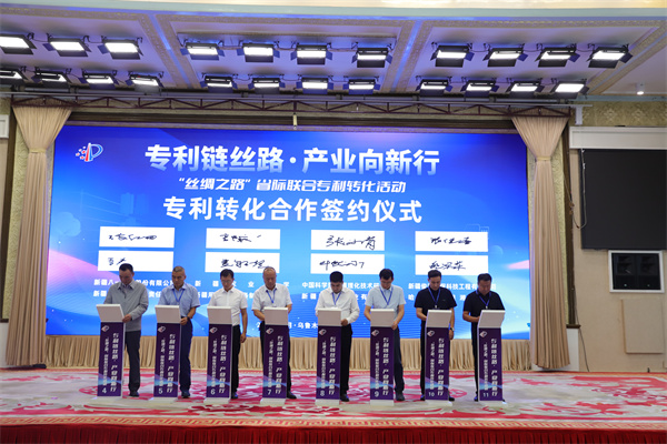 活動中,各?。▍^、市)知識產權局參會領導共同簽署了《提升專利質量促進專利轉化》省際聯合倡議書,承諾將加強合作,共同推動專利事業發展。在專利合作簽約環節,多組企業、高校、科研院所及金融機構完成簽約。其中,中國科學院新疆理化技術研究所與新疆新綠寶藥業有限公司等4組單位達成專利轉化合作;中國銀行新疆分行、工商銀行分別與多家企業完成質押融資銀企合作簽約,為專利轉化落地和企業融資提供了有力支撐。