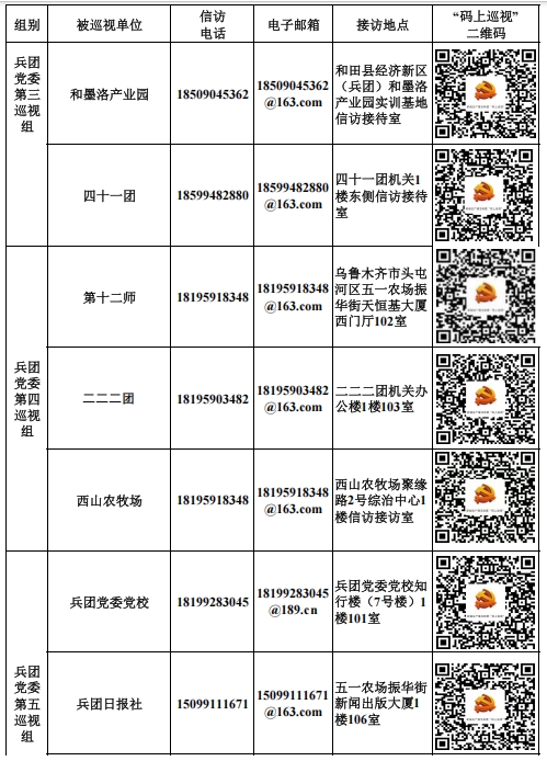 據悉,兵團黨委巡視組將在被巡視單位工作2個月左右,巡視期間設立專門值班電話、電子郵箱和信訪信箱,開通“碼上巡視”舉報平臺,主要受理反映被巡視黨組織領導班子及其成員、下一級黨組織主要負責人問題的來信來電來訪,重點是關于違反政治紀律、組織紀律、廉潔紀律、群眾紀律、工作紀律、生活紀律和中央八項規定精神等方面的舉報和反映。巡視組受理信訪時間截止到2025年11月3日。