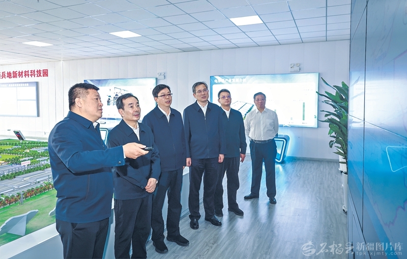 9月9日至10日,自治區黨委書記、兵團黨委第一書記、第一政委陳小江在塔城地區和兵團第九師白楊市調研。這是9月9日陳小江在新疆塔額兵地新材料科技園,聽取園區新能源項目規劃和重點項目推進情況介紹。 石榴云/新疆日報記者崔志堅攝