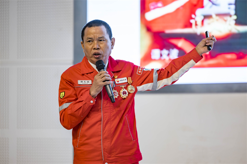 全國勞動模范、大國工匠、中國石油西部鉆探工程有限公司試油公司集團首席技師譚文波講述“我為祖國獻石油”的故事。穆拉提江?沙吾爾丁攝