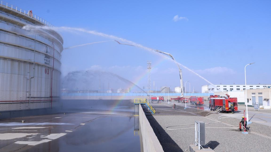 為全面提升消防救援隊伍應對重大安全風險的實戰能力,10月12日,阿克蘇地區消防救援支隊庫車市大隊在中國石化塔河煉化有限責任公司商儲庫區組織開展大型石油化工場所滅火救援實戰演練。