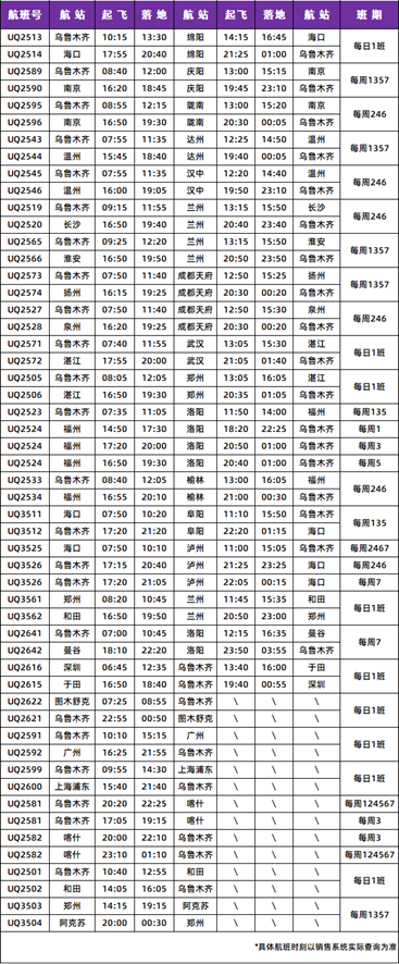 據了解,烏魯木齊航空在新航季重點加強主要客源地與新疆區域的聯系,通過進出疆航線串聯27座內地城市,涵蓋鄭州、成都、武漢等交通樞紐,???、湛江、泉州等風光旖旎的濱海目的地,以及廣州、上海、深圳等區域經濟核心城市,實現航班高效銜接,為冬季客流的跨區域聯動打造雙向通道。其中,???阜陽=烏魯木齊(每周1/3/5)、???瀘州=烏魯木齊(每周2/4/6/7)是烏魯木齊航空冬航季新增航線,現已快速成為旅客“南下避寒”與“北上賞雪”的市場焦點航線。