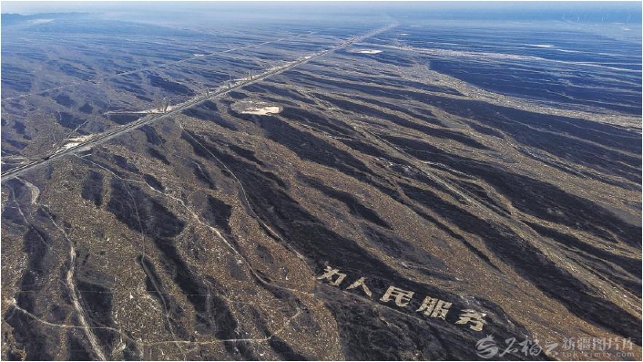 空中俯瞰“為人民服務”巨型飛行地標(11月6日無人機攝)。石榴云/新疆日報記者鄒懿攝