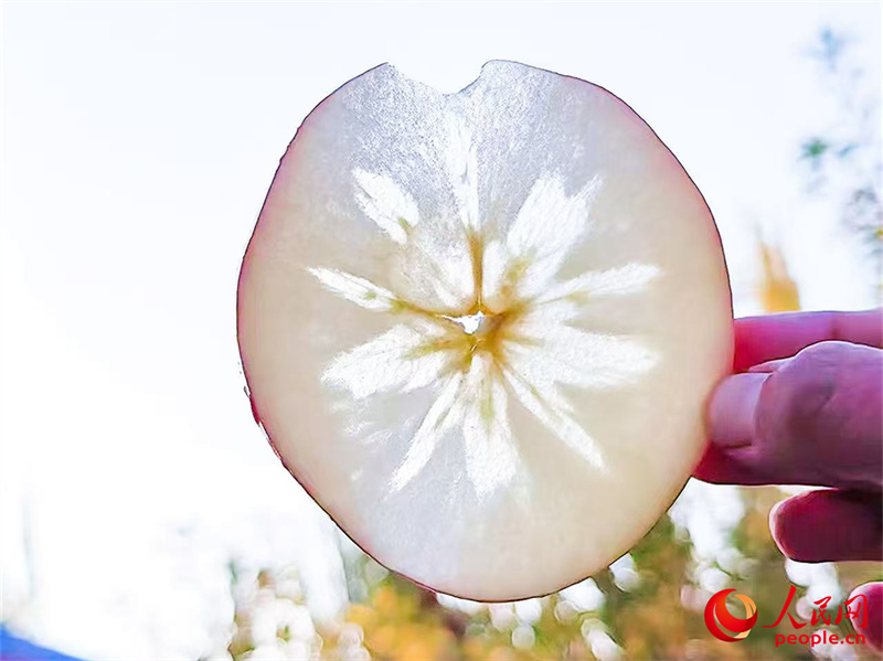 霜降后,蘋果果核周圍形成雪花狀或點狀糖心。人民網記者 陳新輝攝