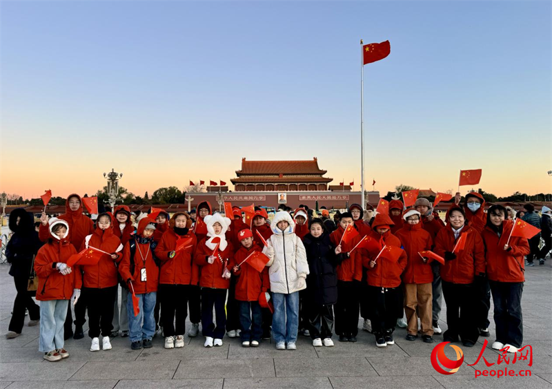 當天,由人民網新疆頻道、烏魯木齊高新區(新市區)委教育工委、高新區(新市區)教育局聯合舉辦的“強國有我 爭做時代新人——2025行走的思政課”活動,來到天安門廣場觀看升旗儀式。本次活動以鑄牢中華民族共同體意識為主線,推動思政教學從課堂走向社會,讓道理可知可感、生動鮮活。